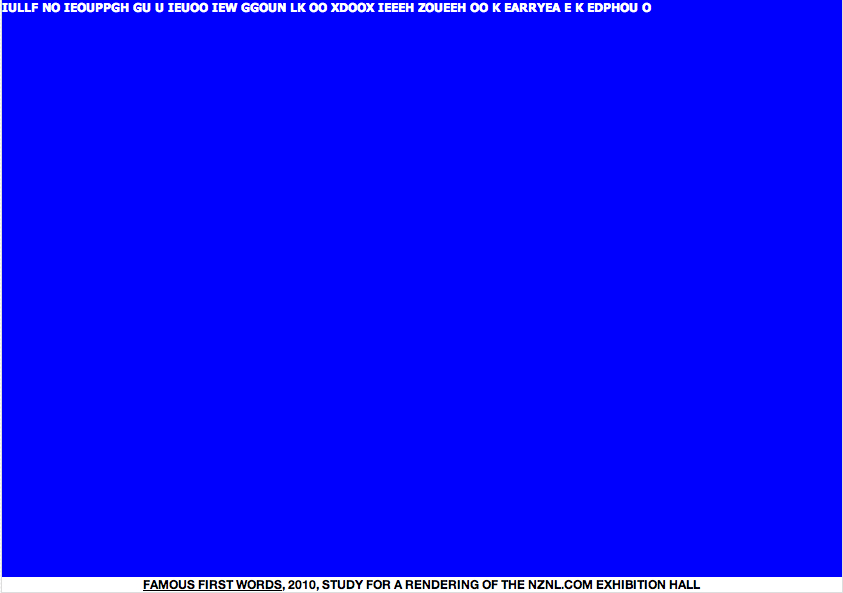 FAMOUS FIRST WORDS, 2010, STUDY FOR A RENDERING OF THE NZNL.COM EXHIBITION HALL web page