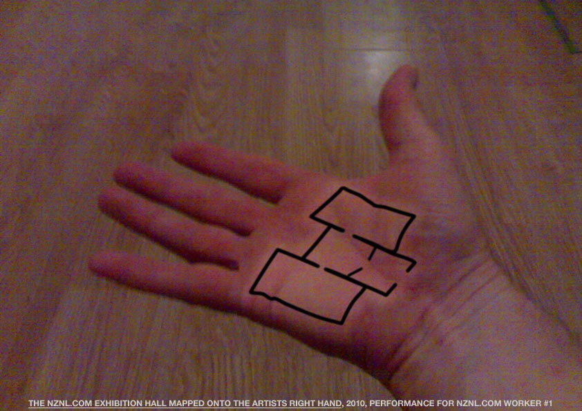 THE NZNL.COM EXHIBITION HALL MAPPED ONTO THE ARTISTS RIGHT HAND, 2010, PERFORMANCE FOR NZNL.COM WORKER #1 fireworks file