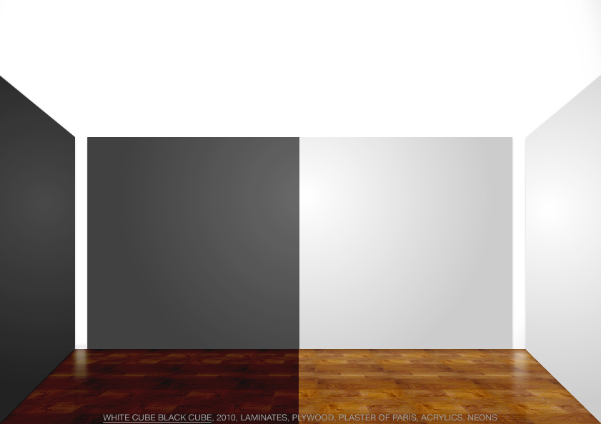 WHITE CUBE BLACK CUBE, 2010, LAMINATES, PLYWOOD, PLASTER OF PARIS, ACRYLICS, NEONS fireworks file