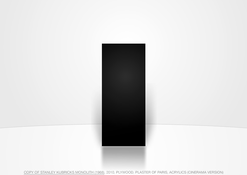 COPY OF STANLEY KUBRICKS MONOLITH (1968), 2010, PLYWOOD, PLASTER OF PARIS, ACRYLICS (CINERAMA VERSION) fireworks file