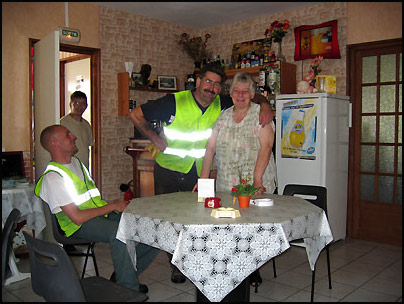 Het was vijf uur en we hadden er genoeg van. Vanaf half tien die ochtend zaten we met z'n allen in de auto en we hadden, geheel tegen de regels van de ANWB in, slechts een half uurtje stilgestaan. Het schiet ook niet echt op met zo'n aanhanger, moet ik zeggen. Afijn. De camping. De camping kwam heel verstandig wél uit de ANWB-gids. Na jaren van tentloos vakantiehouden, leken me enige aanwijzigingen richting veilig en niet al te goor wel fijn. De camping was klein zei de gids en stond in Licques. Dat ligt in Noord-Frankrijk, iets onder Calais. Nieuwsgierig reden we een paadje in en zagen het huisje met het ANWB-vignet. Niks mis met die PR-afdeling, daar bij de ANWB. Twee dagen bleven we bij De Mevrouw. Haar naam weet ik niet dus in onze gesprekken heet ze De Mevrouw. We haalden frieten bij haar en haar handgeschreven bonnetjes heb ik bewaard. Er was niet veel te beleven op de camping. Geen zwembad, maar een schommel en een glijbaan. Kind-I en II wisselden verlegen Frans en Nederlands met de drie andere kinderen. Ze zongen het beroemde O-Zone-lied en bestookten iedereen met water uit hun enorme waterpistolen. Er was niet veel te beleven maar voor ons precies genoeg. Op de ochtend van ons vertrek tracteerde De Mevrouw ons op een petit dejeuner. De kinderen stopten zich vol met chocoladecroissants en wij dronken sloten cafe au lait. Poseren voor de foto wilde ze niet. Tot de deur van haar eetzaaltje openzwaaide en de plaatselijke vuilnismannen hun ochtendkoffie kwamen drinken. Natuurlijk ging ze op de foto en natuurlijk deden zij mee. De foto stuur ik op, beloofde ik, en misschien zagen we elkaar nog eens. We zagen elkaar inderdaad nog eens. Op de terugweg reden we vanzelfsprekend langs De Mevrouw en haar kleine camping. Bonjour! lachte ze ons weer vriendelijk toe. We reden naar dezelfde plek, bouwden het hele circus weer op en zaten er nog twee dagen in de zon.
