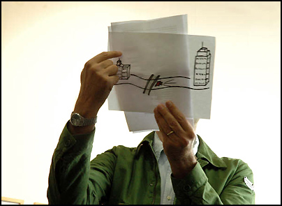 schrijfblok [Previous entry: "Boem"] [Main Index] [Next entry: "Niemandsdag"] 07/09/2005 Entry: "Gelukkig hebben we de foto's nog" Gisteren was er een opening. Allemaal heel echt met mensen en bloemen en toespraken en wijn enzo. Op de meeste openingen waar ik ben geweest had ik een heel andere rol dan op deze. Vroeger, op de openingen van mijn vaders tentoonstellingen, knipte ik linten door. Of speelde ik, samen met de kinderen van mijn vaders collega's, wie het hardst over het parket kon glijden. Of de meeste jus d'orange op kon. Later, op de openingen van partner, bezweerde ik openingsstress, nam de bloemen in ontvangst en hield de inmiddels zelf geproduceerde kinderen in bedwang. Gisteren werd dat allemaal voor mij gedaan, want de opening ging dit keer over mijn ding. Mijn foto's. Het voelde als een verjaardagsfeestje waarvan ik hoopte dat iedereen zich zou vermaken, ik geen stomme dingen zou zeggen en er genoeg taart zou zijn. Ik was een beetje zenuwachtig. Raar genoeg niet vanwege mijn eigen foto's. Die hingen gewoon aan de muren en als iedereen het volkomen ruk had gevonden, was er toch niets meer aan te doen geweest. Maar ik hou er niet zo van als iedereen naar me kijkt. Daarom ben ik misschien wel ooit begonnen met het maken van foto's; dan hoef je er zelf niet op en heb je wat te doen met je handen. De small-talk van recepties heb ik namelijk ook nooit goed onder de knie gekregen. Afijn. Er werden gisteren heel veel foto's gemaakt. Daar stond ik vaak op maar ik zal u mijn metamorfose-neigingen verder besparen. Ik pak niet op papier. Dat komt, volgens de fotografe, omdat ik steeds beweeg. Ik kan wel op filmpjes, maar niet op foto's. Zenuwachtig was ik ook omdat er iemand was die ik hoog heb zitten. En die ging dan iets over mij zeggen. Jezus. Toen hij na een halve minuut begon te vertellen dat hij het niet over mijn foto's ging hebben maar over mijn leven, zocht ik dringend naar die grote plant om achter te verdwijnen. Maar na de schrik heb ik alleen maar heel hard gezucht en heel hard gelachen. Gezucht vanwege het grote snap-gevoel en gelachen om zijn presentatie. Gelukkig is daar ook weer een foto van. Foto Hans Aarsman met tekening: Saskia van der Sluis.