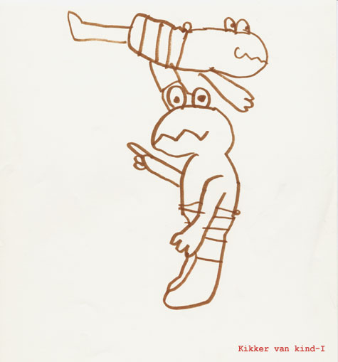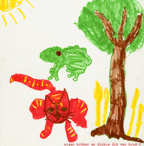 Uitmarkt ![]() Bij het Schrijverspodium kunnen kinderen leren hoe ze Kikker van Max Velthuijs en Dikkie Dik van Jet Boeke kunnen tekenen. Dat is leuk. Jet Boeke legt alles uit, eerst het hoofdje, dan de oortjes en zo verder. Bijna iedereen tovert een Dikkie Dik op z'n tekenblok tevoorschijn. Max Velthuijs begint met te vertellen dat al het tekenen ontstaat uit een lijn. Een rechte, een kromme of een bobbelige lijn. Uit die lijn komt ook zijn Kikker. Op het tekenblokje van Kind-I verschijnt ook een kikker. Overigens is Max Velthuijs dit jaar tachtig jaar geworden (hoera) en ter ere daarvan is er binnenkort in het Letterkundig Museum in Den Haag een overzichtstentoonstelling te zien van al zijn werk. En dat is veel uitgebreider dan Kikker, Haas, Varkentje, Rat en Eend. De exacte datum is me ontschoten maar ergens achter in september moet het gebeuren. Verder hebben Kind-I en ik in de best behoorlijke drukte maar liefst vier kinderboeken, twee heliumballonnen, twee kleurboekjes en een poster gescoord. En hele harde muziek gehoord. Speciaal voor T. uit het reactiedinges: